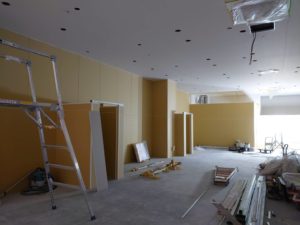 外周部の壁を軽鉄下地と石膏ボードで作り