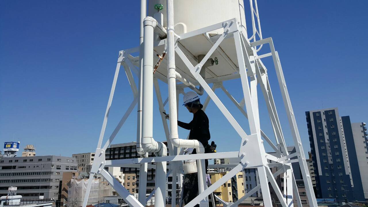 今日は天気が良い中 給水塔の塗装
