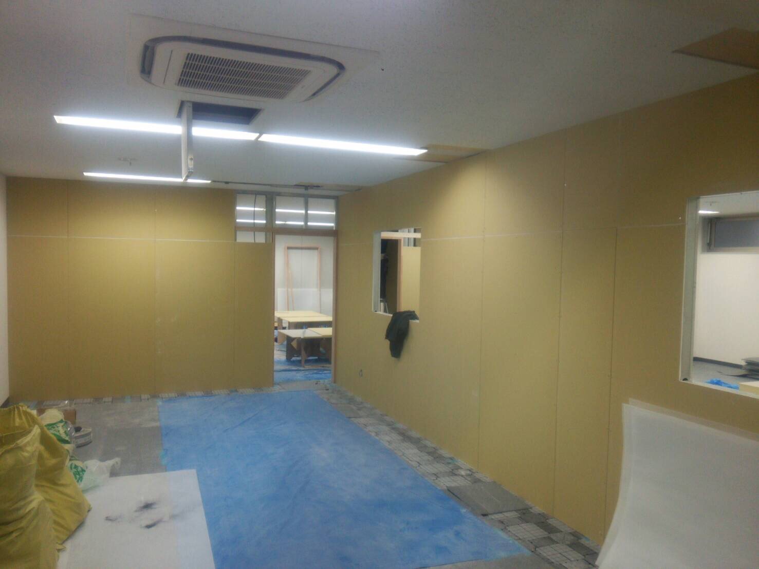 軽鉄で作る壁はその用途により、グラスウールや防音シートなどを組み合わせるや